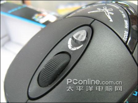 鼠标滚轮后方为分辨率切换按键并具备指示灯功能,只要我们按一下该按键便可改变鼠标的分辨率,并通过不同的颜色来显示不同的分辨率。