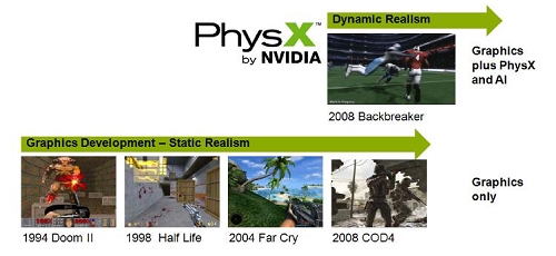 静态真实被众多的游戏厂商重视,也是玩家们最津津乐道的,人们常常以游戏画面来衡量一款游戏的好坏,大作发布前期都喜欢放出一些唯美的游戏画面来吸引玩家,相比之下,动态真实则还没有引起足够的重视,直到2006年Ageia发布物理PhysX加速卡时,动态真实的物理加速概念才逐渐被人们接受。