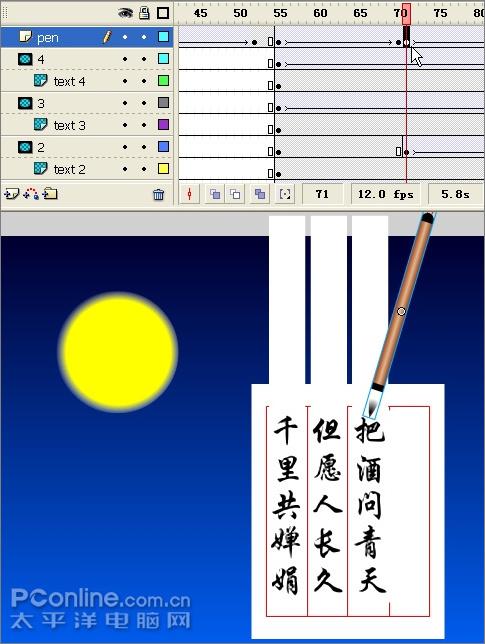 Flash动画实例教程:毛笔题诗贺中秋(2)