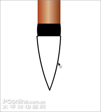17、用直线工具在毛笔的下端画出如下三角形。