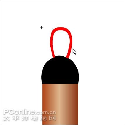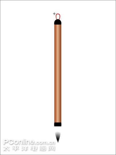 16、用笔刷工具在毛笔上端随便画一条弯曲的红线。