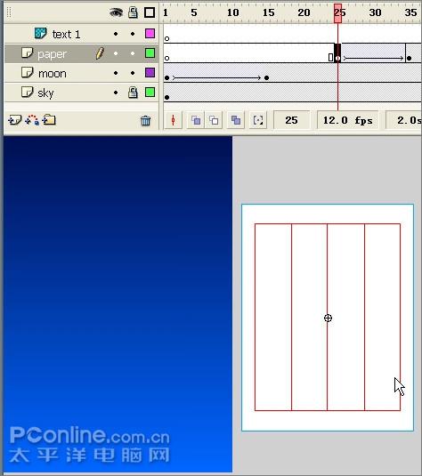 23、选择信纸层,将第1个关键帧放在第25帧处。