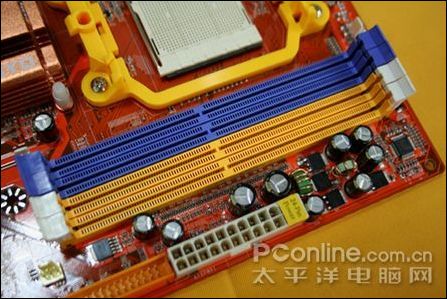 梅捷 SY-A780C-GR主板提供4条DIMM内存插槽,支持双通道DDR2 533/667/800/1066MHz内存规格,最高支持8GB内存容量。
