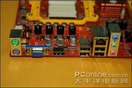 梅捷 SY-A780C-GR主板提供包括键盘PS/2、鼠标PS/2、VGA、HDMI、USB2.0、RJ45网卡接口在内的I/O接口。