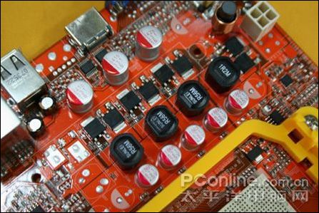 梅捷 SY-A780C-GR主板采用了主流的4相供电设计,用料则选用了大量高品质固态电容,辅以全封闭式电感,为处理器提供纯净电流供应的同时,保证了主板的稳定运行。