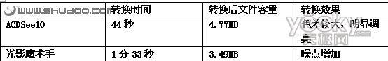 小结:显然,ACDSee的转换质量比起光影魔术手有较大差距,两者的转换时间比接近于1:2,而质量优劣比则超过这一比例,因此,光影魔术手的效果和速度的结合位置更接近于黄金分割点。
