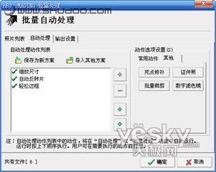 打开光影魔术手,我们点击“文件→批处理”命令就可以打开“批量自动处理”窗口来设置RAW格式转换功能。我们在这里可以设置的内容要比ACDSee多,诸如在“自动处理”选项来添加“缩放尺寸、死点修补”等动作,还可以预览命名效果(图2)。