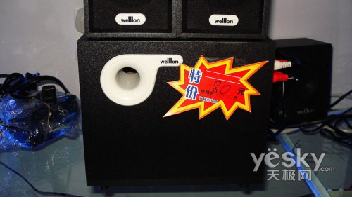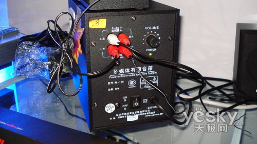 音箱的电源开关以及音量调节旋钮都在主箱的后面,使用起来不太方便,这是低价音箱的不足之处,各品牌的产品都有这样的缺陷。