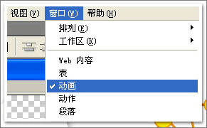 6、在IR中点窗口勾选“动画”选项,打开动画面板。7、在动画面板上第一帧显示第一个分解动作图层,同时隐藏其它图层。