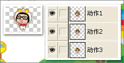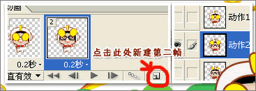 8、在动画面板上新建一帧,在第二帧显示,第二个分解动作图层,同时隐藏其它图层,依此类推。