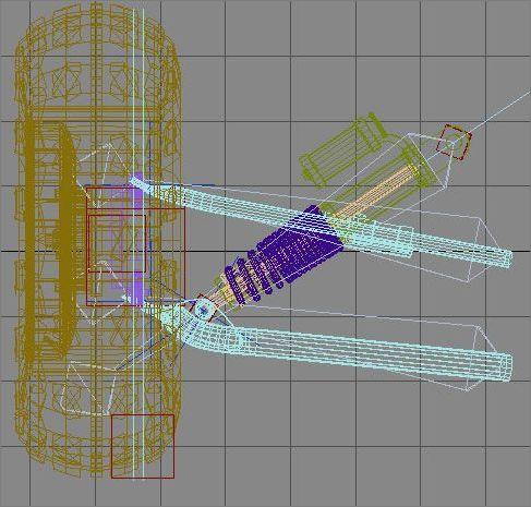 因为我用的是3D MAX5.0,它里面没有动力学工具,所以我用了一些简单的方法来完成传动装置和控制机构的制作,这里我不得不调用了一些金属的力学性参数。我会尽力去向你说明我用什么技巧使传动装置正常传递功率。就以下面的前轴为例: