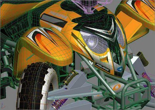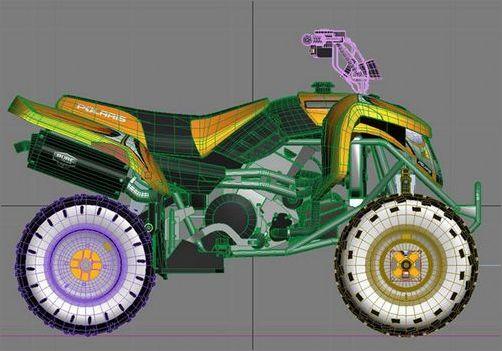 通常,你需要一个相当不错的实物模型来作为参考。不幸的是我没能为这辆四轮车找到任何蓝本。但我设法找到了一些关于四轮车的正面图片,建议在收集图片时不要只限于官方网站,你还可以去google 图库或其他相似的网站搜索一下。业余拍摄者的照片有时比正规网站的图片更为清晰,因为它们没有经过美饰。从而会反映出物体最真实的一面。