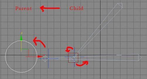 我在水平轴上创建了一个骨骼和一个垂直骨骼,然后给它们加上IK链。再把水平骨骼IK控制点和一个已经创建好的圆周轨迹相连。把垂直骨骼IK控制点和一个连在水平骨骼的虚构物体相连。