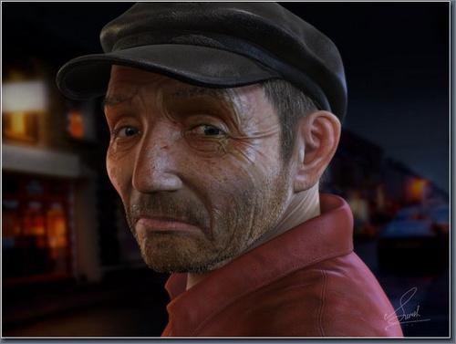 继续为人物添加细微处的细节,使其呈现一个中年男子的皮肤效果。通过以上的绘制,图11即为渲染后效果。