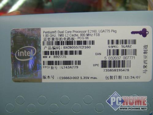 [品牌型号] Intel Pentium Dual Core E2160(正品盒装/三年保)