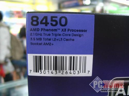 AMD Phenom X3 8450处理器采用了AMD最新的一拉即开整体嵌入式包装。AMD Phenom X3 8450处理器的核心名称为Toliman,采用65nm工艺制程,TDP功耗值为95W,支持Hyper Transport 3.0,采用AM2+接口,同样是940针,可以兼容上一代AM2接口的主板。