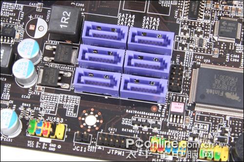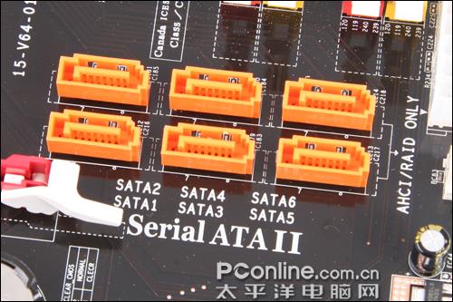 主板提供了6个SATA接口和一个IDE接口,并可以组成RAID 0、1、0+1、5多种RAID模式。
