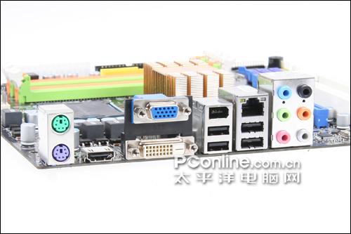 主板的I/O接口齐全,并提供VGA/HDMI/DVI三种视频输出接口,方便用户的使用。