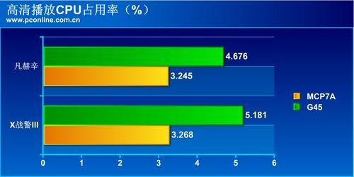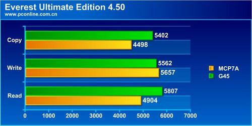 在该测试中,MCP7A和G45有一定的差距,MCP7A芯片组落后于G45芯片组。