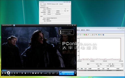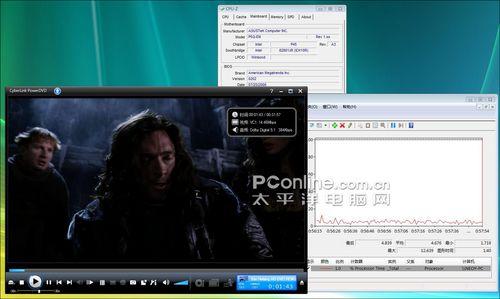 这项测试,我们选用了VC-1编码格式的影片《凡赫辛》和H.264编码格式的影片《X战警III》来做测试,并打开硬件加速,测试集成显卡的解码性能。