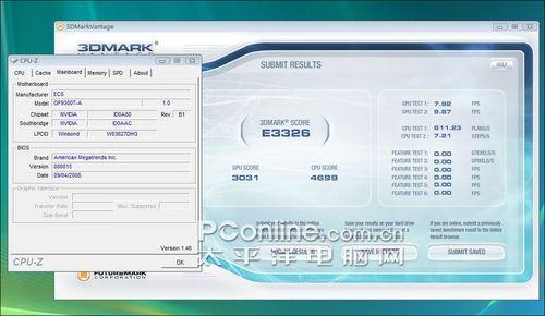 8月30日,PConline评测室发布首测文章《领先G45近90%!nVIDIA MCP7A主板首发评测》,介绍了MCP7A芯片组的一些基本情况,在那时,还是工程样品的MCP7A芯片组主板就表现出了强大的显示能力,让人们对其充满期待。