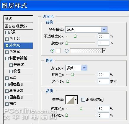16、给瞳孔图层的样式设置如下外发光效果,使眼珠更有立体感。