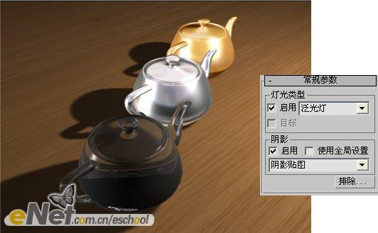 3dmax制作不同材质茶壶的投影效果(4)