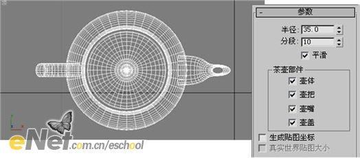 1、启动3dmax9.0,单击“创建”命令面板,点击“几何体”按钮,在下拉列表中选择“标准基本体”项,单击“茶壶”按钮,在顶部视图中新建一茶壶Teapot01,调整其大小,如图1所示。
