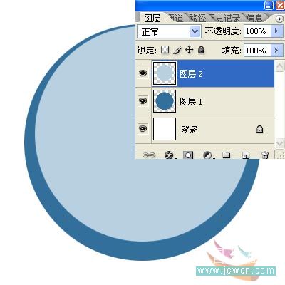 七、不要取消选区,新建一层,得到图层3,设置前景色为:#336f9b,按Alt+Delete键填充,如图: