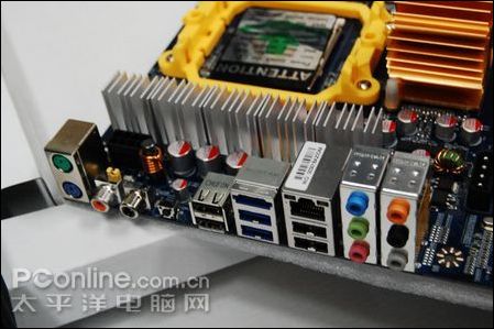 供电部分,捷波 悍马HA04采用了五相供电回路,五个封闭式电感搭配大量的富士通固态电容,并且在MOS管上覆盖了铝制散热片,为CPU提供纯净的电流提供了有力的保障。