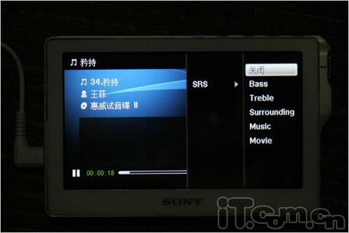 与视频播放类似,PMX-M86并不支持国内MP4大多具备的支持FLAC和APE等无损格式的音乐文件,仅支持MP3、WMA和AAC三种格式。PMX-M86排序提供“字母”、“容量”和“日期”三种方式。在歌曲播放过程中,长按播放键,就可以将歌曲添加到“收藏夹”中,形成独立播放列表,这点比较有特色。另外,PMX-M86支持歌词显示。播放中还可以选择EQ、SRS及播放模式。EQ包括普通、流行、摇滚、古典、爵士;SRS音效则包括BASS、TREBLE、SURROUNDING、MUSIC和MOVIE,还是非常丰富的。播放模式则有普通、全部循环、单曲循环、随机播放及A-B循环等选项。