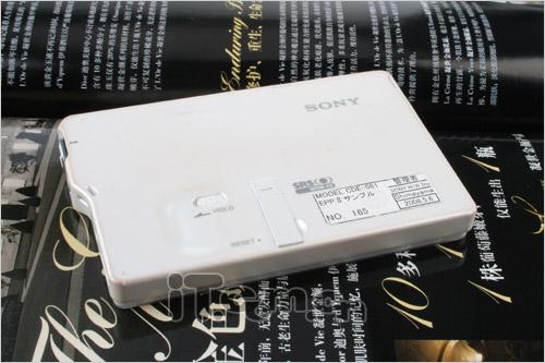PMX-M86背部设计体现了PMX系列的精华,设计了一个隐藏支架,打开角度为45度、90度的两段式设计,配合超大的液晶屏以及内置立体声扬声器,放在桌面可以轻松和朋友一同欣赏。背部还设计了HOLD键,较紧,可以有效的避免误操作。同时在此处还做了一些标注,包括右上角的Sony标志,右下角的SRS WOW HD标志等等。