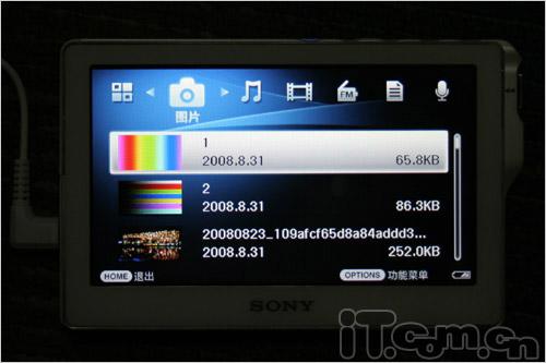 图片浏览功能方面,PMX-M86支持4000x3000以下的JPEG图片或1024x1024以下的BMP图片。图片浏览速度偏慢。按下OPTIONS可以调出右侧菜单选项。“变更视图”可以将图片按普通图标排列或转换成缩略图排列方式。同时PMX-M86为使用者提供了多样化的幻灯片浏览效果,包括从左移入、从上移入等等,也可设置间隔时间和循环模式。PMX-M86也支持将图片进行2倍和4倍的放大,同时支持在聆听音乐的同时欣赏图片以及可将喜欢的图片设置成壁纸。实际显示效果对应原有屏幕表现,色彩鲜艳,过渡平滑,只是由于分辨率的缘故,凑很近看还是略有颗粒感。
