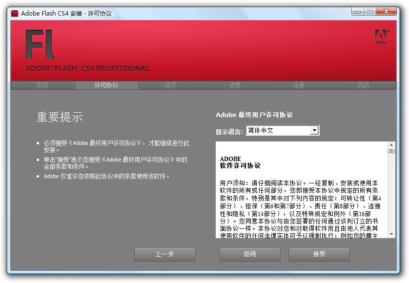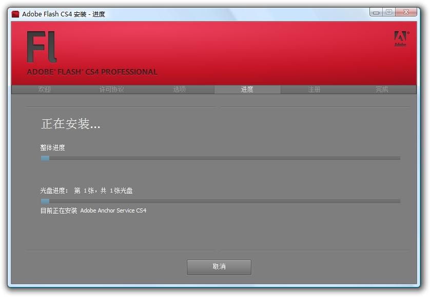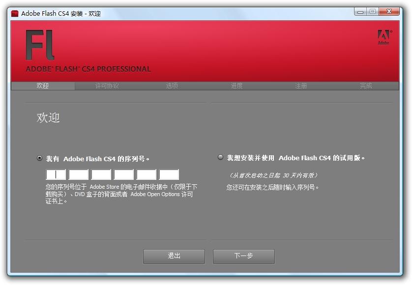 在网上下载后文件是Adobe Flash CS4 Install Americas.exe,点击选择解压,解压完成,安装开始,以下是截图;