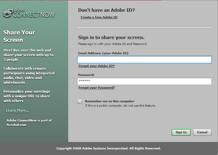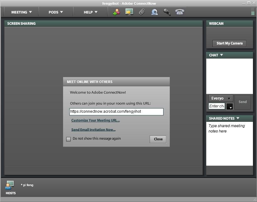 登录完成后,自动启动Adobe Connectnow程序,把上面的地址发送给对方,也可利用Email进行发送;
