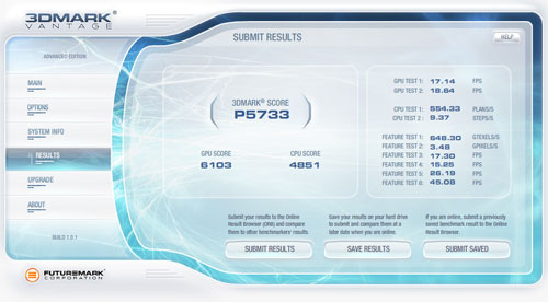 从上面软件提示不难猜出,Fusion For Gaming Utility软件主要就是对CPU和GPU进行自动超频,不过AMD官方的表述并没有详细说明。为了验证这个想法,我们来看看下面测试平台开启Fusion功能前后整个系统跑3Dmark Vantage的成绩变化。