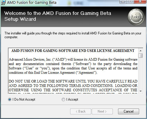在电脑成为生活必不可少的一部分以后,编辑相信大多数人更需要的是一台简单易用的电脑,简化IT也成为现在IT业界的一个口号。有了Fusion for Gaming Utility工具,电脑在系统负载较低的时候,CPU和GPU自动降频来降低整体功耗,风扇转速和噪音值也随之降低;当运行游戏或其它高负载应用程序时,CPU和GPU自动超频到一个可控的范围,获得额外的性能加速,而且不用担心系统超频后的风险。对于普通的电脑用户,尤其是品牌电脑的购买者,他们不需要懂得专业的硬件知识,通过Fusion For Game软件轻轻一按,就可以获得系统性能的优化,非常诱人。