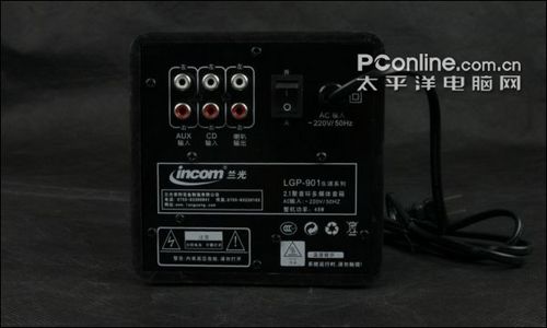 从箱体背部来看,音箱支持AUX INPUT /CD INPUT输入接口,内部拥有高效、高保真的集成电路功放,让声波完美释放。