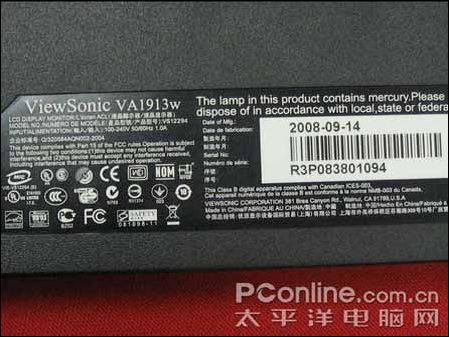 【品牌型号】优派VA1913wm宽屏液晶显示器