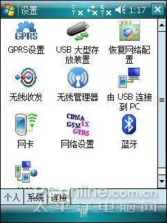 琦基i55的程序与设置列表,功能非常的丰富,设置里表里包括个人、系统、连接三个选项面板,小到个人信息的设置,大到系统的设置,全部涵盖其中。里面还包括连接功能的管理,可设置和管理无线收发、无线管理、网卡、蓝牙连接等功能,非常的方便。