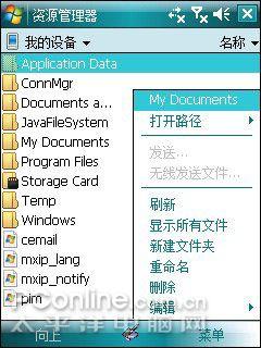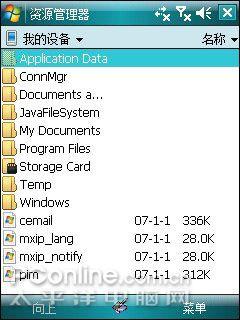 内置的手机资源管理器,操作与xp系统一样,可以查看手机中所有的文件,而且系统文件夹的命名方式与XP命名相同,熟悉的朋友很容易上手。