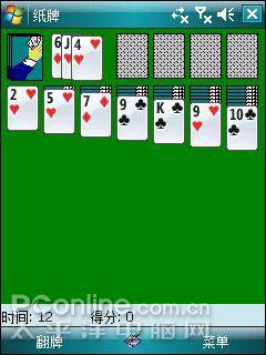 内置的两款游戏,上图左边的是“消除类”游戏,选择最多的颜色相近的球体就会得分。右图为微软系统经典纸牌游戏。
