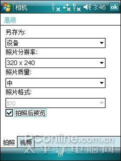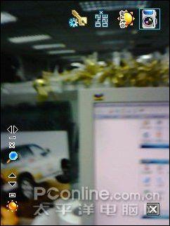 琦基i55采用200万像素CMOS摄像头,最大可拍摄1280×960的相片。拍照功能界面简洁易用,在最下方的位置各种拍摄参数设置很直观的就可以点击设置。不过遗憾的是琦基i55并没有配置闪光灯,仅仅在摄像头右侧设置了自拍镜,而摄像头旁设置微距与普通模式的开关,方便近距离拍摄。