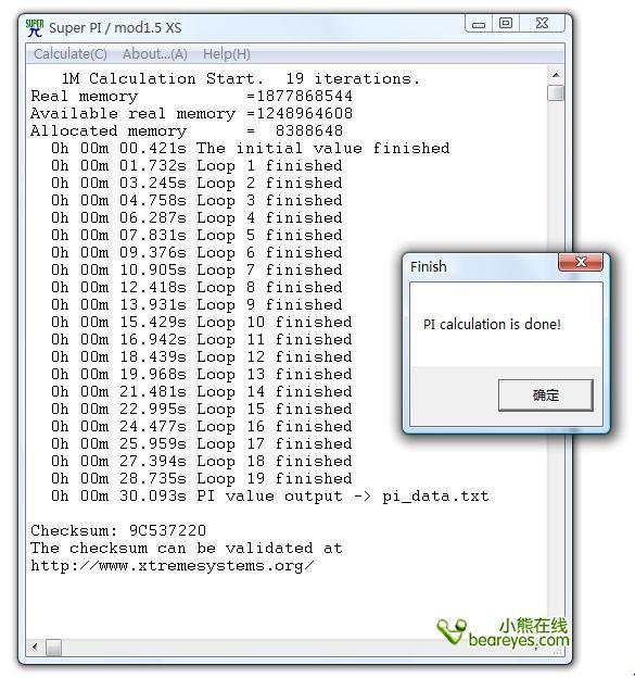 Super π 1M直接逼近30s,对于并不擅长Super π测试的AMD双核来说效能还算不错