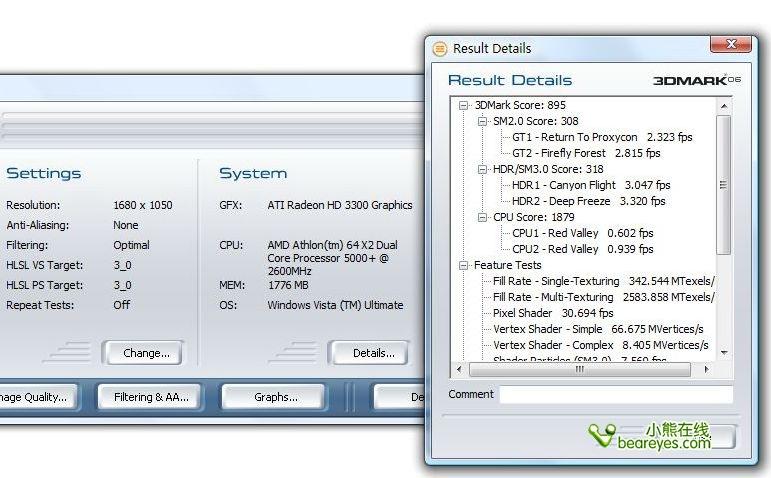 在1680*1050的分辨率下,Radeon HD 3300依然得到了895分