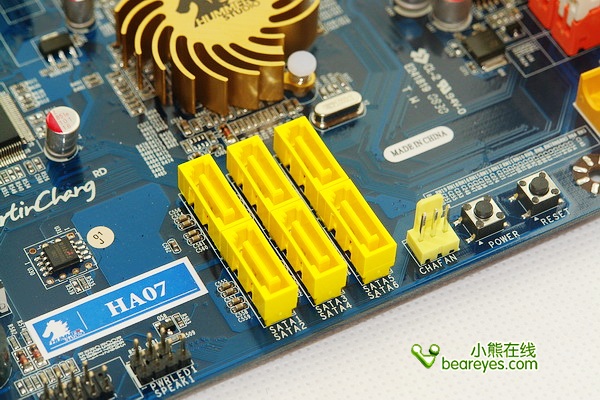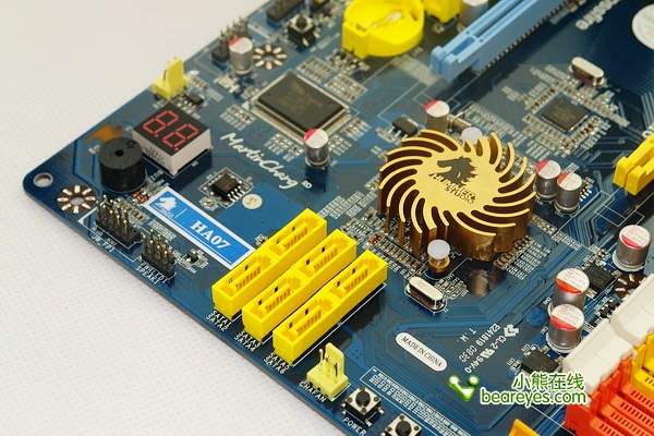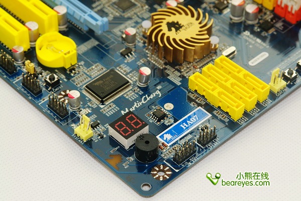 HA07依然板载蜂鸣器、清除CMOS点触开关以及开关/重启微动按键,是为超频所特别设计的,十分人性化,非常适合喜欢裸机使用的用户或超频玩家。