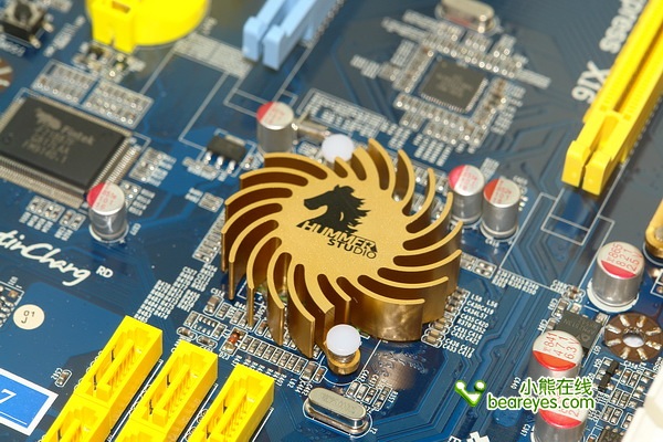 南桥为铝质的散热片设计,其上“HUMMER STUDIO”的Logo显得很酷,意为悍马工作室