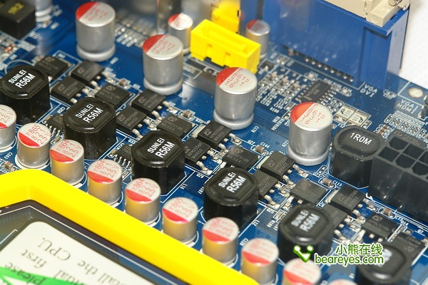 悍马HA07所采用的铝壳固态电容具有低阻抗、高低温稳定、耐高纹波及高信赖度等优越特性,对于超频有着至关重要的作用。此电容工作适应温度为-55——105度,阻抗在100MHz环境下低于10毫欧,在105度的严酷环境下可以连续工作达4W小时以上。