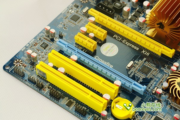 二、790GX和标准的ATX主板一样,同样配备了双PCI-Express X16显卡插槽,可完美支持双8x PCI-E显示插槽所构架的多路CrossFire交火,这一点也是官方标准的780G所不具备的(捷波HA06等非公版除外)。