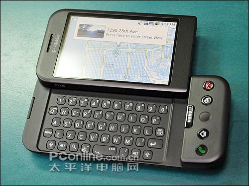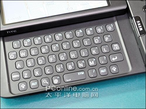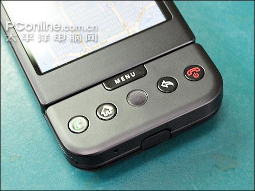G1最让人注目的地方,是它的侧滑盖QWERTY键盘。G1侧滑盖键盘特殊的地方在于,它只有上半部屏幕的地方可以推出去,与一般侧滑盖手机整个上盖推出去不一样;另外,上盖在往外推的时候,其实是有一个弧形的轨迹,并不是直直地推出去。为什么要这样设计?我们也不晓得。